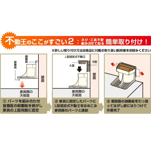 楽天市場 不動王 L型固定式 Fft 001 2個入 累計12 304個越えの販売実績 つっぱり棒では耐えられない震度7の地震対策対応重量1箱 約115kg 倉庫a 11月30日9 59までポイント5倍 表参道通販クラブ